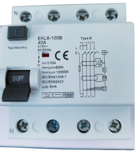 Υπόλοιπος τρέχων διακόπτης 40A συσκευών Rcd RCCB διακοπτών με το διακόπτη ΣΥΝΕΧΟΎΣ 6mA προστασίας RCCB